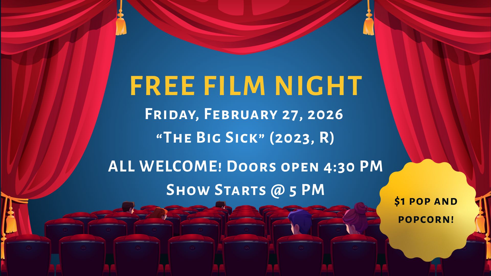 Friday, February 27 | Free Film Night: | Free Admission, $1 pop and popcorn available |